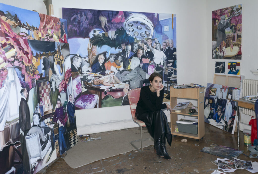 Liza Sivakova explores themes of power, memory, and the instability of historical narratives through painting. Combining archival imagery, collage, and her own photographs, she creates ambiguous scenes where fiction and reality intertwine. Her works reflect on social tension, patriarchal structures, and the fragility of collective truth. Through dense atmospheres and emotional ambiguity, Sivakova invites viewers to reconsider familiar images and the systems of power they conceal.
